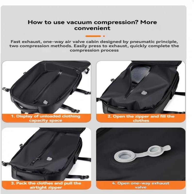 • Intelligent And Safe Travel Safe:Multifunction vacuum Back Pack Secure your belongings with a built-in password lock and a hidden back zipper pocket,Ideal for storing passports,wallets,or other valuables during travel,It also has a USB charging device,which can be charged anytime and anywhere