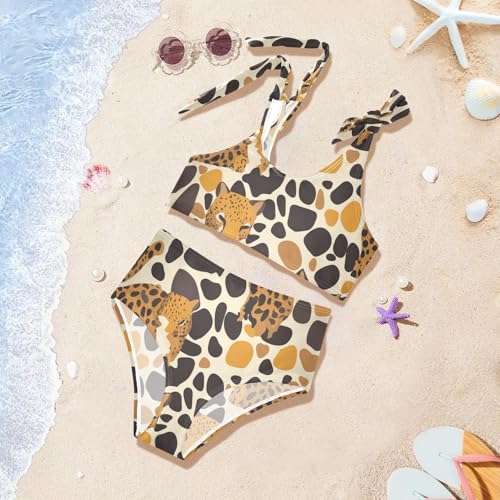 More information about Abstract Leopard Cheetah Skin Shapes Girl Two Piecing Kids Bikini Set Beach Bathing Suit Swimwear Cute Shoulder Strap
