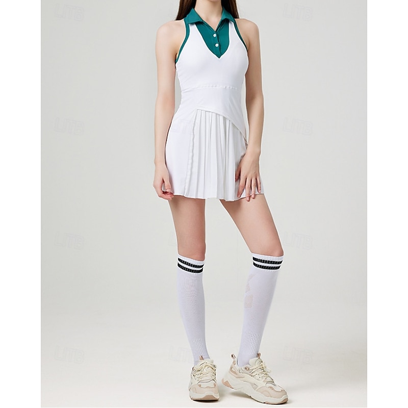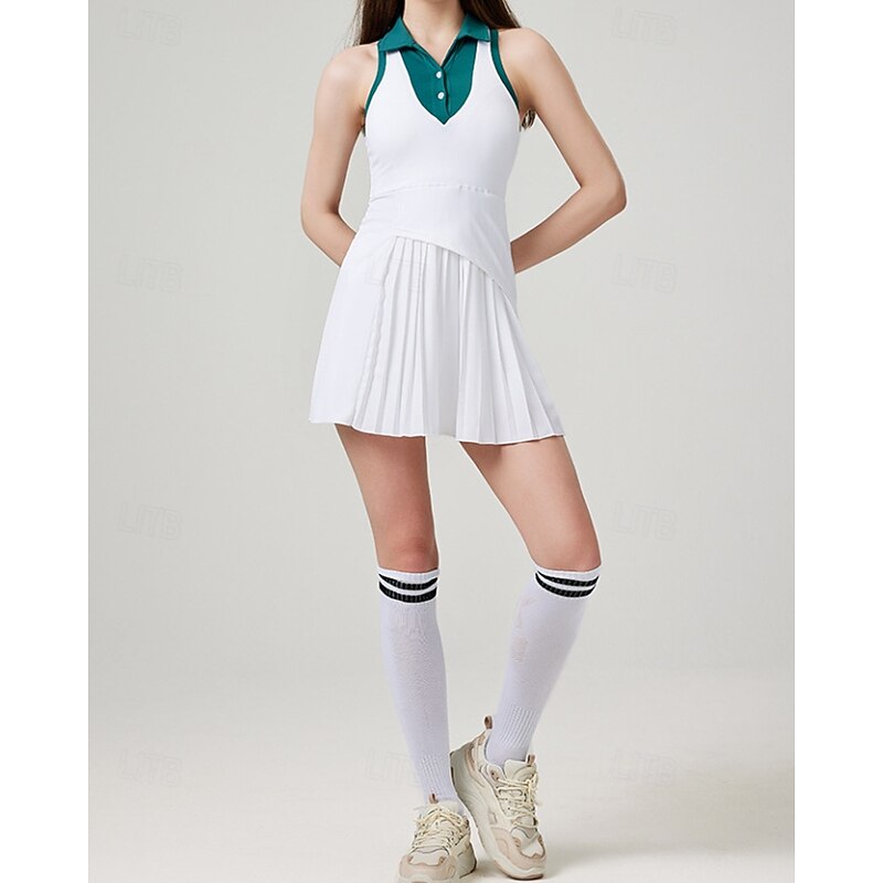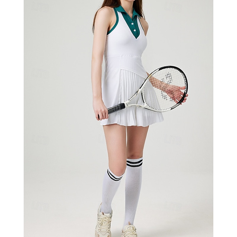 $54.99 - Women's Patchwork Tennis Dress Sleeveless Pleated Contrast Binding Quick Dry Breathable Tennis Pickleball Polo Collar Dress White Spandex Tennis Clothing 2025. Shop for cheap Women's Tennis Dress online? Buy at lightinthebox.com on sale today!