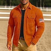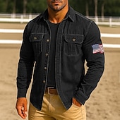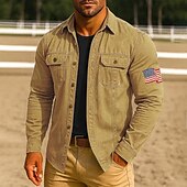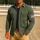 More information about Men's American US Flag Work Shirt Western Shirt Cargo Shirt Long Sleeve Casual Tactical Sports Outdoor WorkWear Spring Fall Turndown Front Two Pockets Button Up Shirts Black Army Green Red Blue Orange