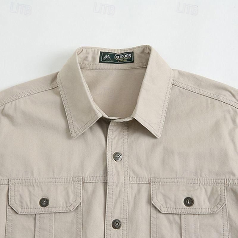 Men's American US Flag Work Shirt Western Shirt Cargo Shirt Long Sleeve Casual Tactical Sports Outdoor WorkWear Spring Fall Turndown Front Two Pockets Button Up Shirts Black Army Green Red Blue Orange 18