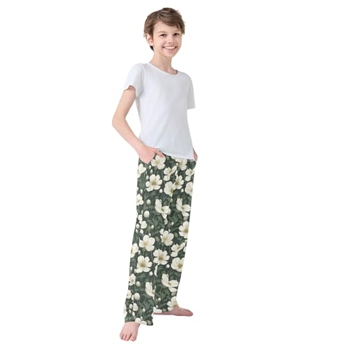 Flowers Long Pajama Pants Elastic Waist PJ Bottoms with Pockets S A111380 1