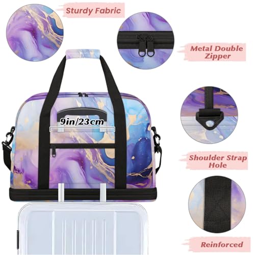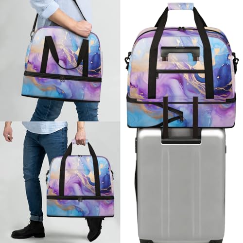 HOT ! Large Weekender Overnight Bags Colorful Abstract Marble Texture Travel Duffel Bag for Women Men Gym Bag With Shoe Compartment Foldie Travel Tote Bag Carry On Personal Item Bag for Travel Gym Sports