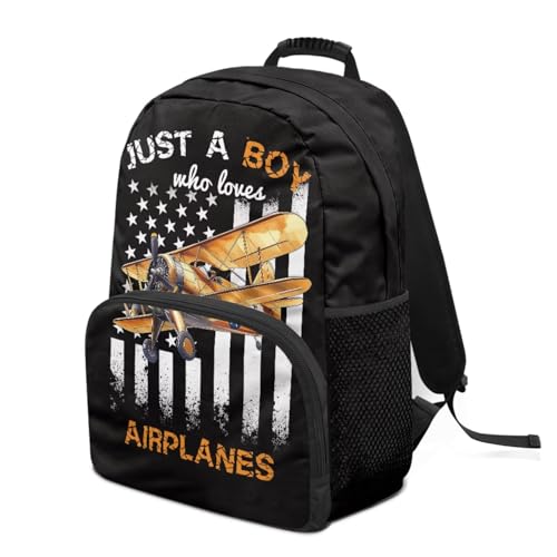 HUIACONG Custom American Flag Backpack for Boys with Name Personalized Bookbag and Lunch Box Customized Airplane Backpacks for Elementary Middle School Bag Back to School Gifts 7