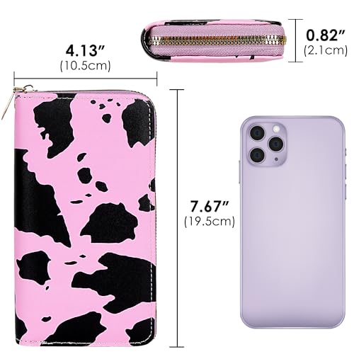 More information about Pink Cow Print Wallet for Women - Long Zip Around Clutch with Wristlet, Credit Card Organizer and Phone Holder