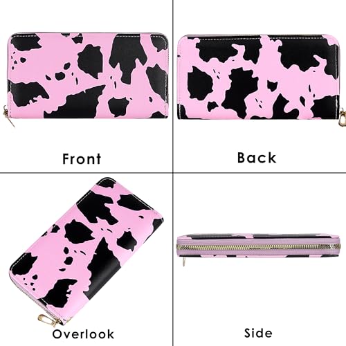 Pink Cow Print Wallet for Women - Long Zip Around Clutch with Wristlet, Credit Card Organizer and Phone Holder 4