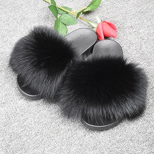• 💝UNIQUE DESIGN: Cute, furry and thick fur covers the black upper of real fur slippers. Our sexy fashion fur sandals slippers are slip on style and very lightweight. Durable sole makes our fluffy real fur slides flip flops look better after months of usage.