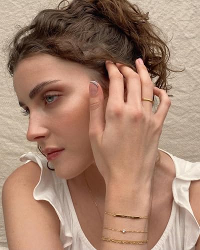 HOT ! Waterproof 14K Gold Stack Bracelet for Women Non Tarnish,Stainless Steel Chain Dainty Layered Bracelets Inspirational Jewelry Gift for Women