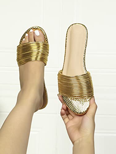 GORGLITTER Women's Summer Metallic Flats Sandal Dressy Cute Open Toe Slipper Slip on Slide Beach Sandals 2025 7