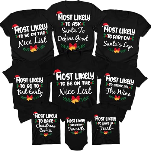 HOT ! Most Likely Family Matching Christmas Shirt, Funny Christmas Tee Tops, Personalized Shirts For Christmas Party, Custom Family Reunion Couples Vacation Most Likely To T-Shirts