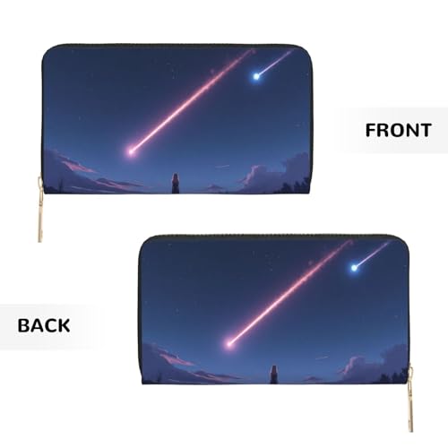 • Quality Material: Crafted from ultra-fine microfiber PU leather, this Magical Sky Meteor Print wallet women will surely impress with its soft inner lining. Our ladies wallet combines premium faux leather and quality metal zipper for a comfy, lightweight, and sturdy experience. Discover the elegance of leather wallets for women with our superior card holder wallet
