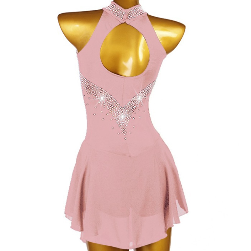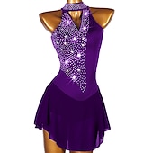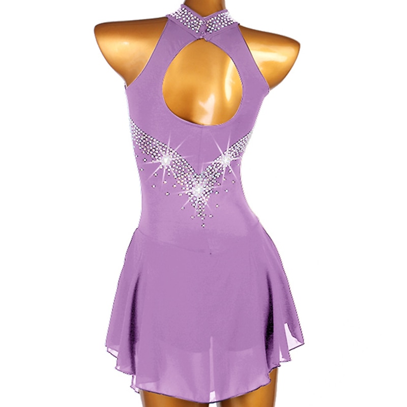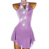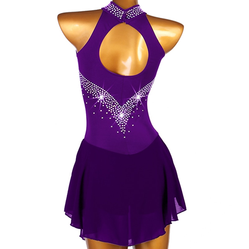 More information about Figure Skating Dress Women's Girls' Ice Skating Dress Yan pink Dark Purple Light Purple Open Back Mesh Spandex High Elasticity Competition Skating Wear Handmade Crystal / Rhinestone Sleeveless Figure