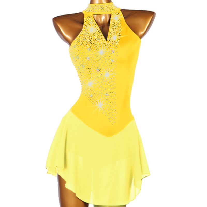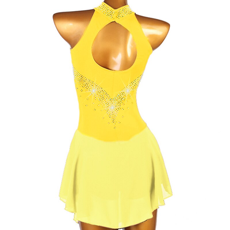 Highlights - Our product boasts the highest quality fabric made with breathable, soft, and elastic materials. - Ideal for various occasions such as stage performances, gymnastics, skating, competitions, and casual wear, as well as winter sports like figure skating, ice skating, and roller skating. - Please note that only dry cleaning machines should be used and the clothes should be flipped before washing to ensure proper care. - Our product comes in 10 different sizes suitable for all ages and dancers, both girls and women. - Made with Spandex and Mesh materials, this product features a sleeveless design, high elasticity, and an open back for maximum flexibility and style.
