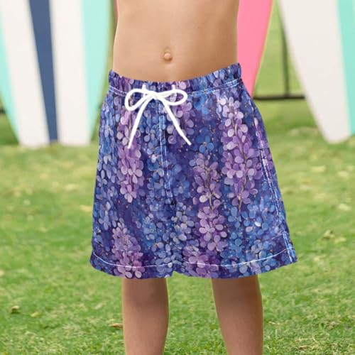 Pigsaly Boys Swim Trunks Wisteria Lavender Flower Boys Board Shorts Swimsuit Swimwear Summer Bathing Suit 2T 4