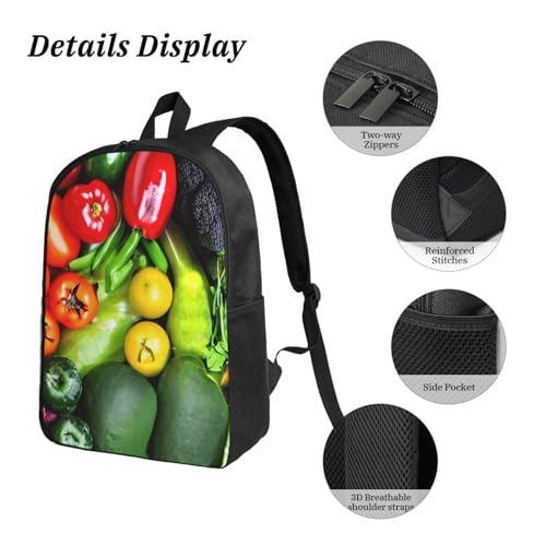 • Perfectly Sized: fresh vegetables fruits print 3PCS Backpack for Men Women brings thoughtful design with a 12.6x5.1x17 in backpack, 7.9x3.5x4.8 in insulated bag, and 8.7x1.8x4.3 in pencil pouch to keep things organized and tidy.