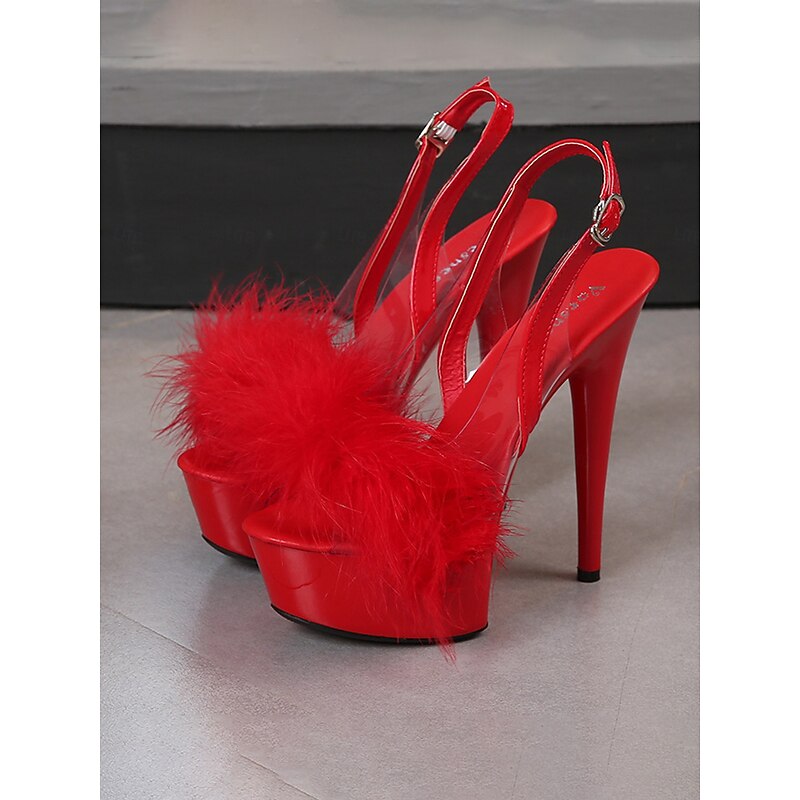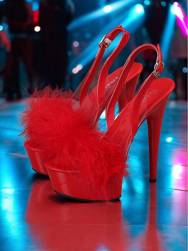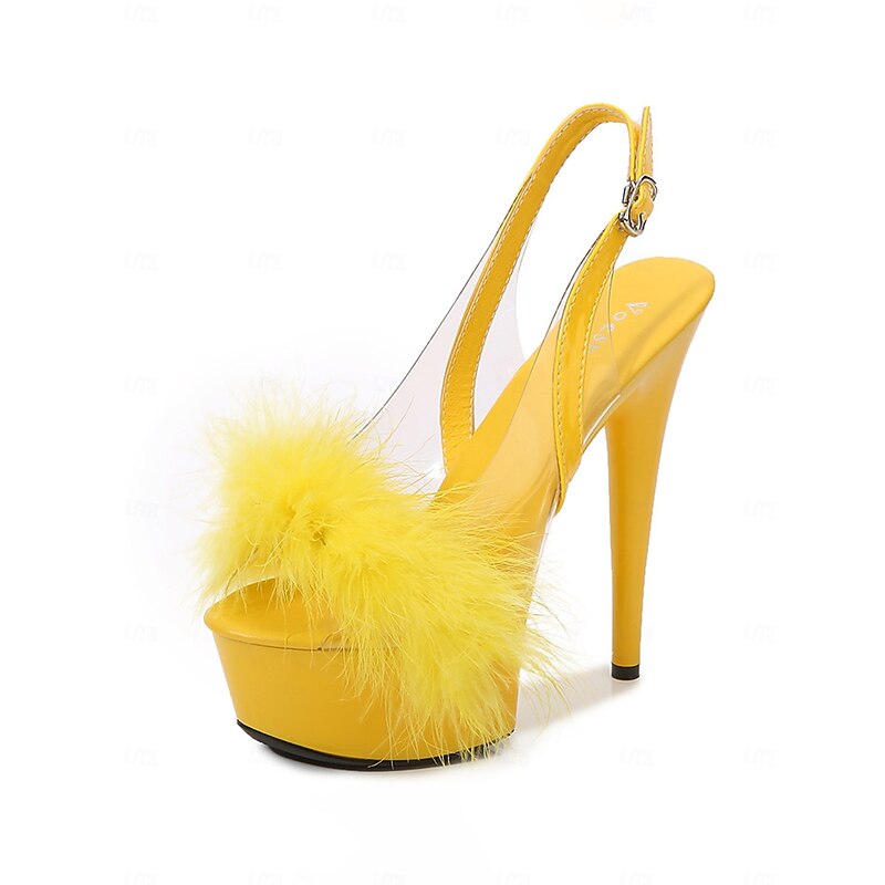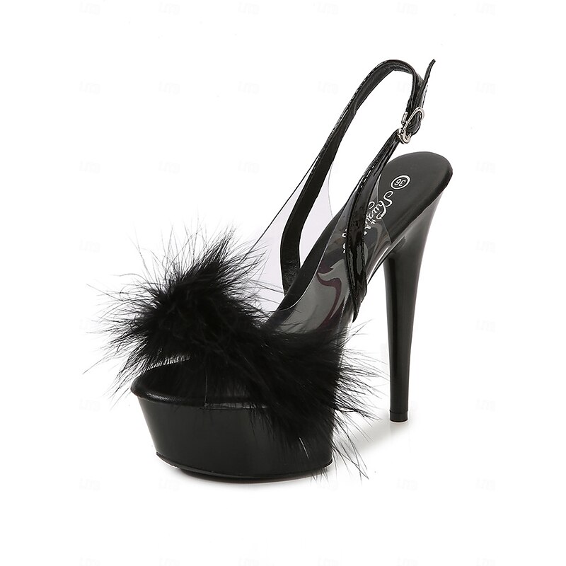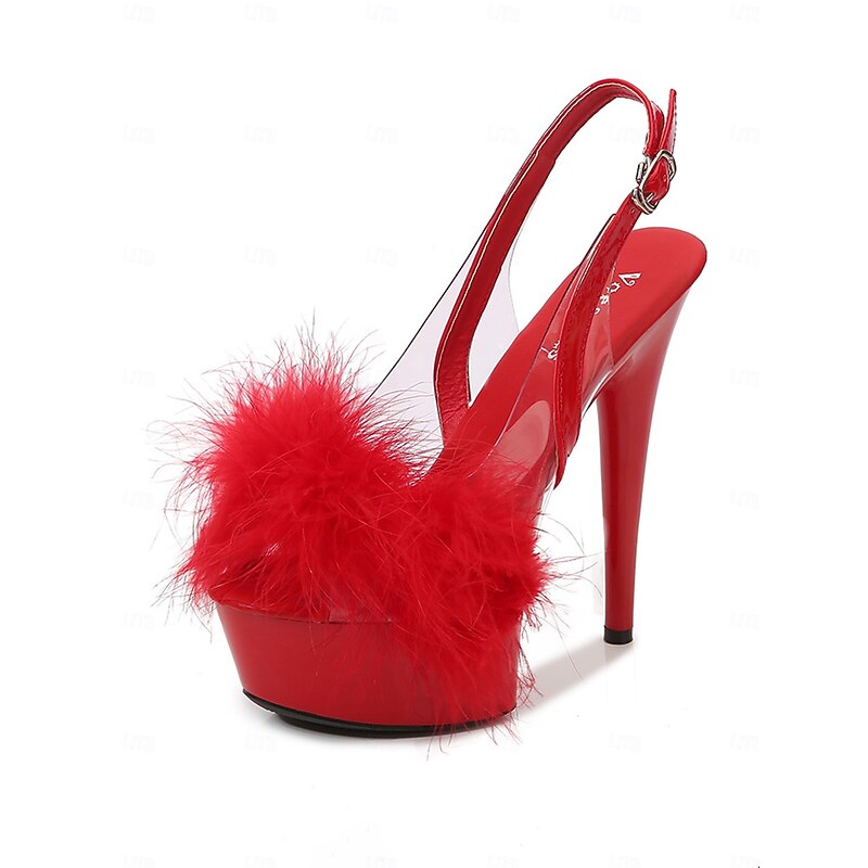 HOT ! Feather-Embellished Platform Stiletto Wedding Heels for Women – Glamorous Open-Toe Bridal Party Shoes with Slingback Design
