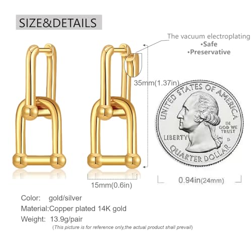 • Material: These paperclip link chain earrings are gold plated with 925 sterling silver posts for longevity, nickel free, lead free and hypoallergenic.