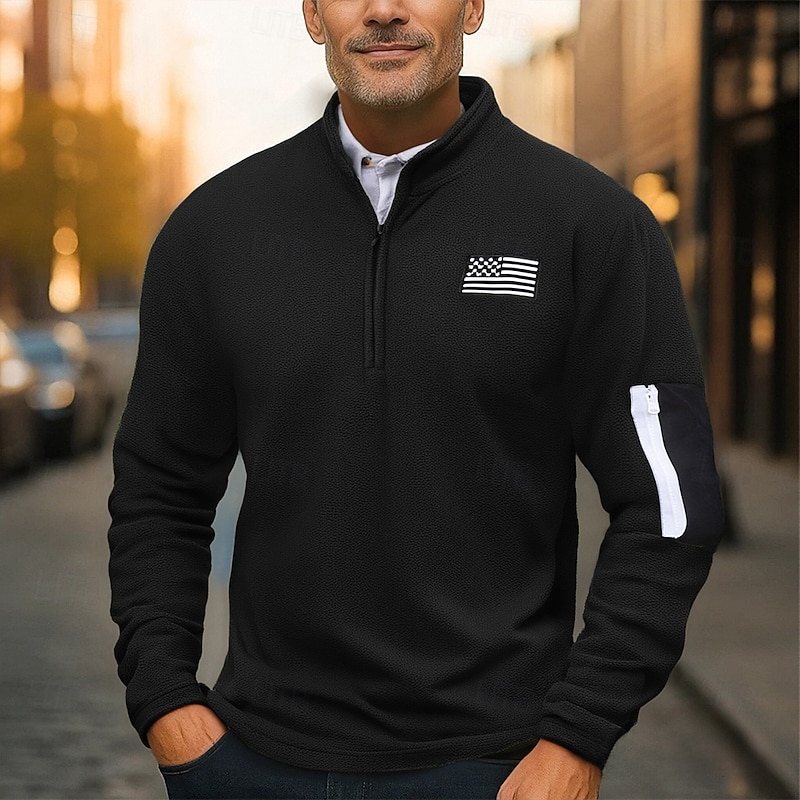 More information about Men's Sweatshirt Fleece Sweatshirt Quarter Zip Sweatshirt Black Army Green Gray Half Zip National Flag Quarter Zip Sports & Outdoor Daily Holiday Polyester Streetwear Basic Casual Fall Winter