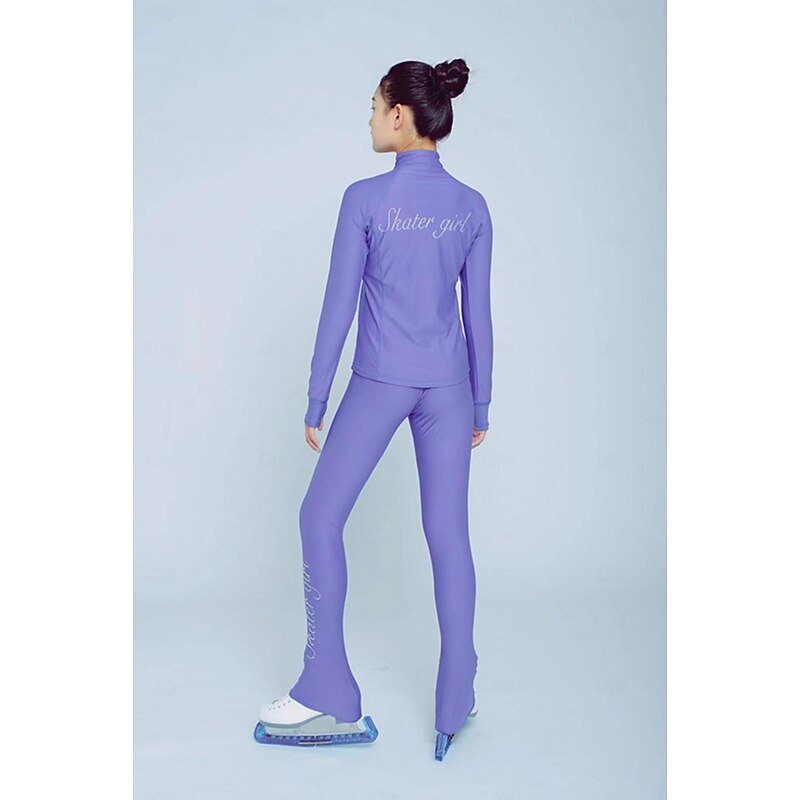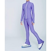 More information about Figure Skating Fleece Jacket Figure Skating Pants Figure Skating Jacket with Pants Women's Girls' Ice Skating Jacket Tights Outfits Pink Purple Patchwork Thumbhole Spandex Stretchy Training Practice