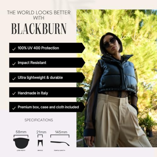 More information about Blackburn Italian-Crafted, Trendy Square Sunglasses for Women Men, Fashionable Sun Glasses Modern Shades UV400 Protection