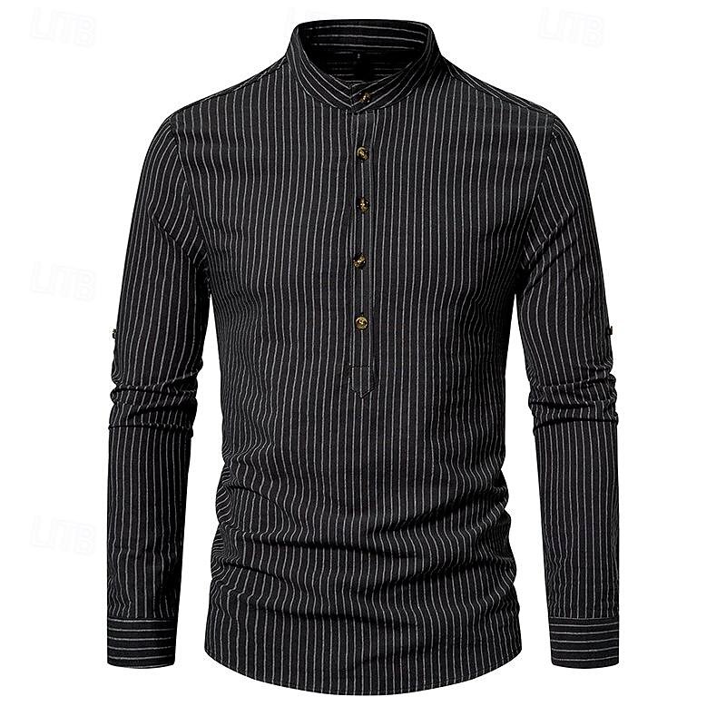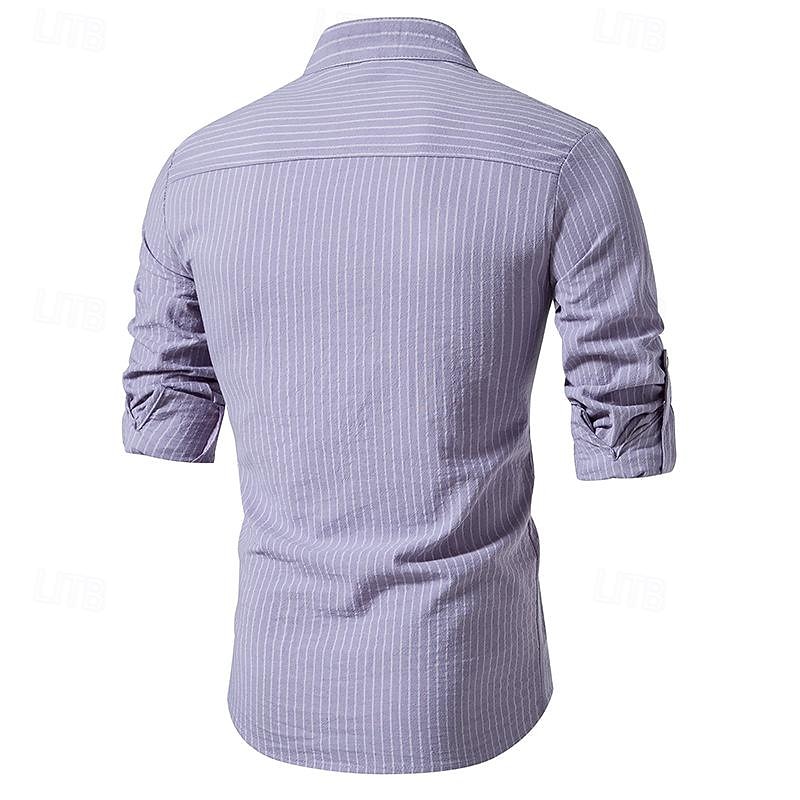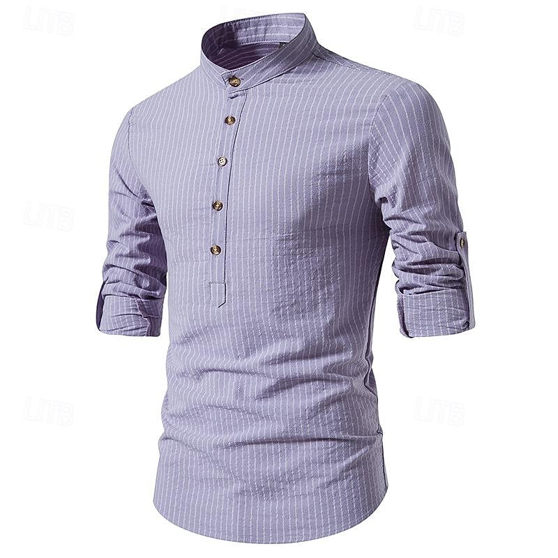 HOT ! Men's Shirt Chinese Collar Shirt Mandarin Collar Shirt Popover Shirt Casual Shirt Cotton Shirt Striped Vacation Hawaiian Black White Pink Purple Long Sleeve Band Collar Spring & Fall Clothing Apparel