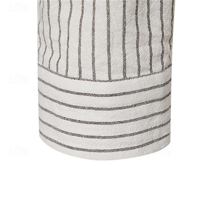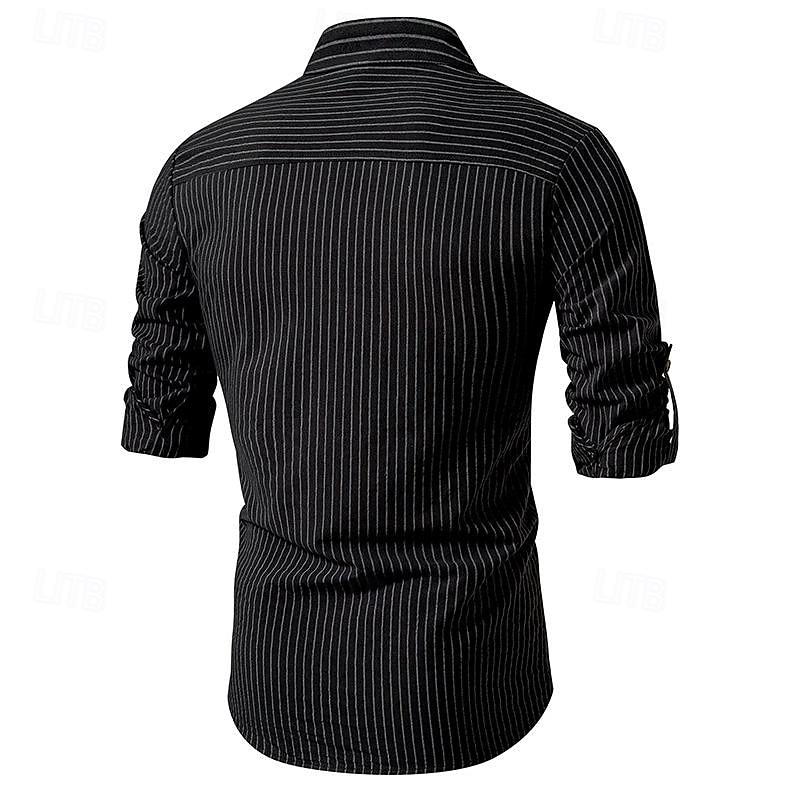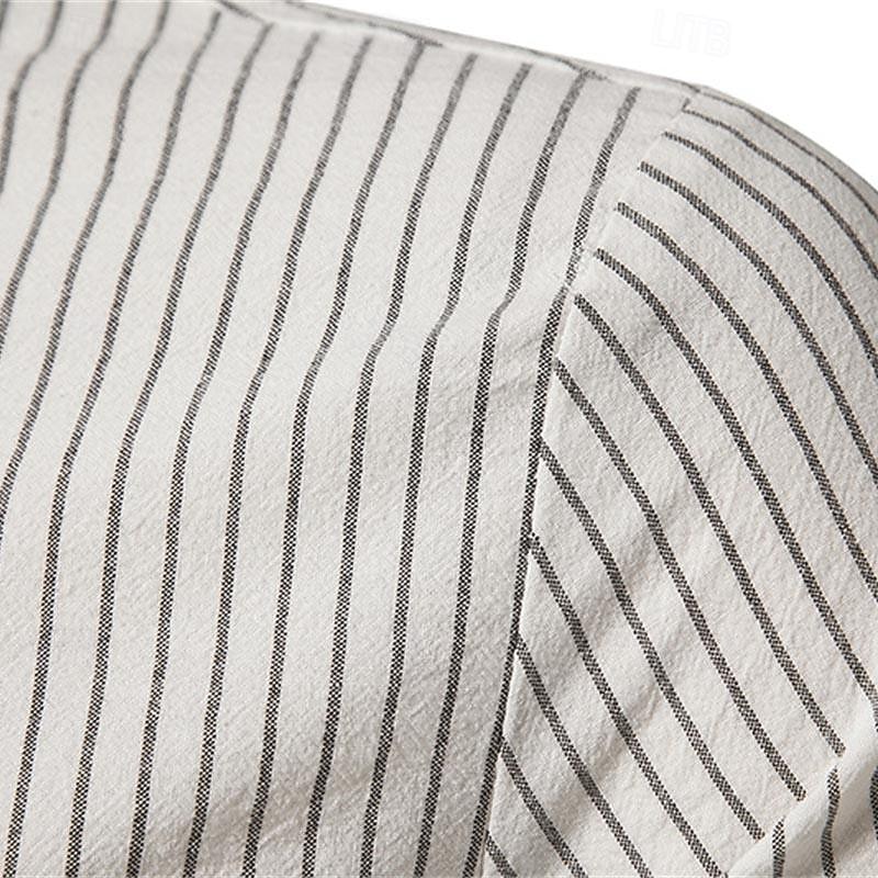 More information about Men's Shirt Chinese Collar Shirt Mandarin Collar Shirt Popover Shirt Casual Shirt Cotton Shirt Striped Vacation Hawaiian Black White Pink Purple Long Sleeve Band Collar Spring & Fall Clothing Apparel