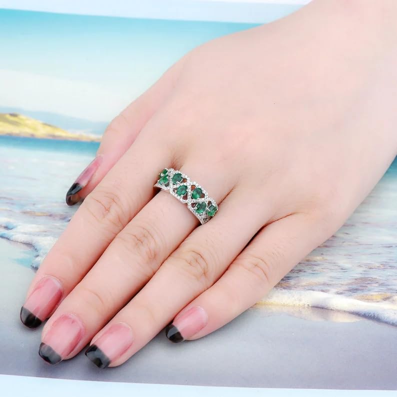• Created Colombian Emerald Ring: The Created Colombian Emerald symbolizes kindness, faith, kindness, eternity, luck and happiness, and wearing it will bring peace for a lifetime. It is also a memorial stone for the 55th wedding anniversary.