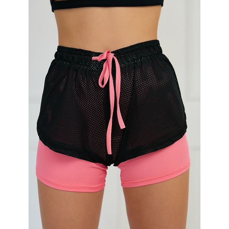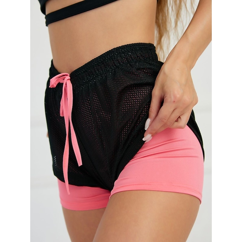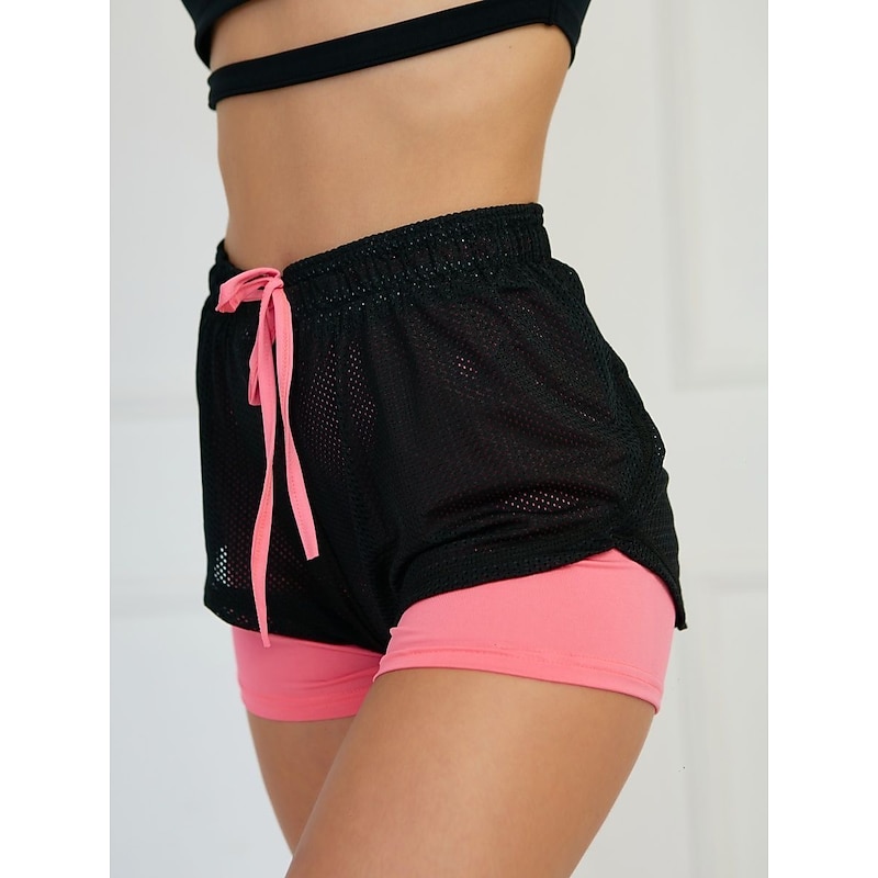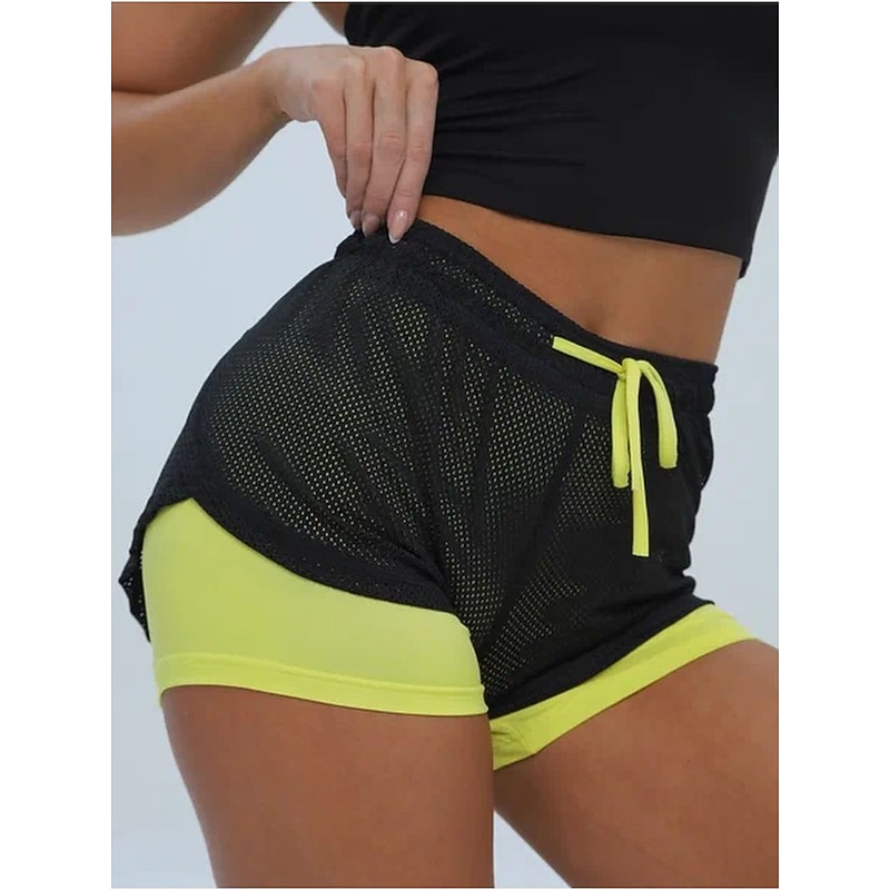 HOT ! Women's Running Shorts Gym Shorts Yoga Shorts Drawstring 2 in 1 Liner Bottoms Athletic Breathable Quick Dry Sweat wicking Yoga Fitness Gym Workout Regular Fit Sportswear Activewear Color Block Iron