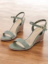 More information about Women's Green Wedge Sandals with Adjustable Ankle Strap, Open-Toe Design and Comfortable Sole for Summer Wear and Casual Outings