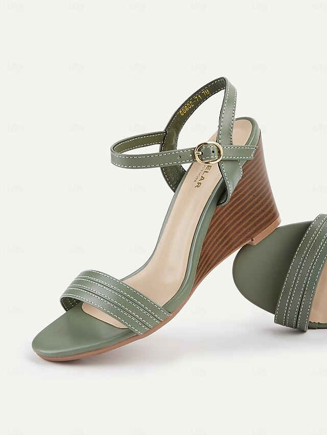 Women's Green Wedge Sandals with Adjustable Ankle Strap, Open-Toe Design and Comfortable Sole for Summer Wear and Casual Outings 15