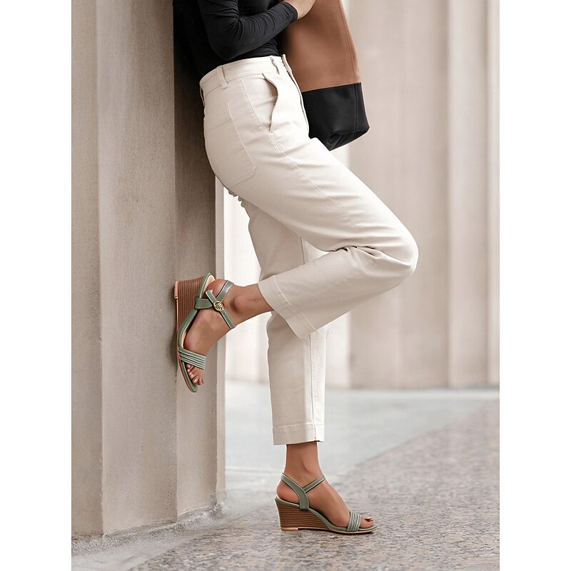 HOT ! Women's Green Wedge Sandals with Adjustable Ankle Strap, Open-Toe Design and Comfortable Sole for Summer Wear and Casual Outings