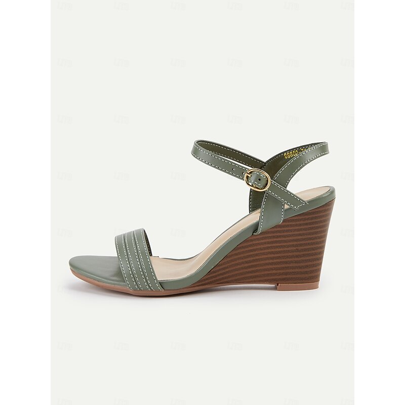 Women's Green Wedge Sandals with Adjustable Ankle Strap, Open-Toe Design and Comfortable Sole for Summer Wear and Casual Outings 6