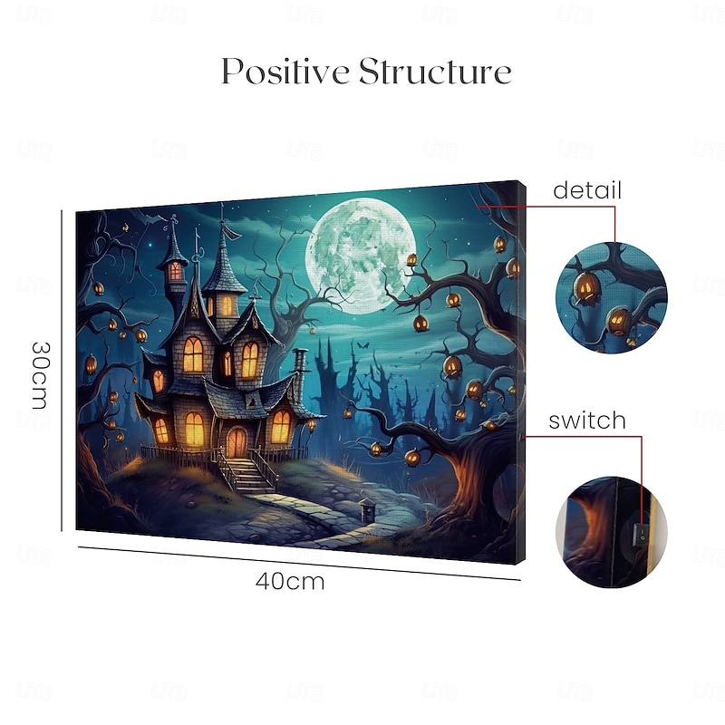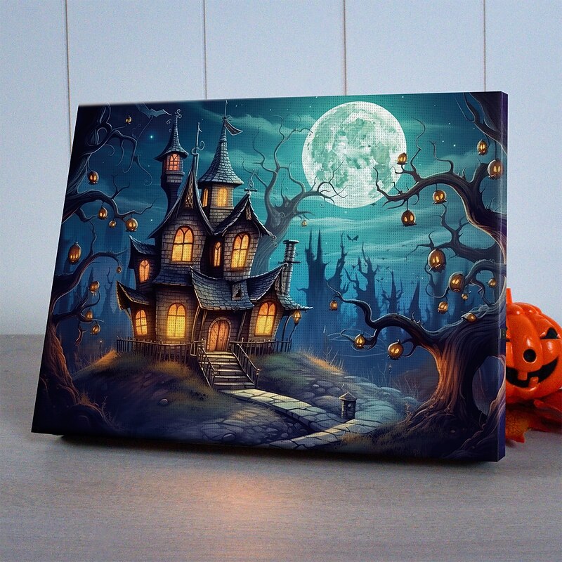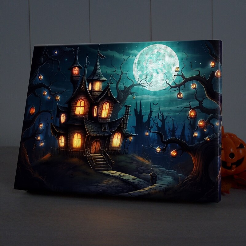 $35.99 - Halloween Full Moon Haunted Village LED Canvas Wall Art - Battery Operated Lighted Wall Decor for 2025 Halloween home decoration light livingroom and bedroom 2025. Shop for cheap Halloween Wall Tapestries online? Buy at lightinthebox.com on sale today!