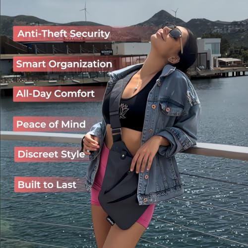 • Spacious Multi-Pocket Design: Stay organized with multiple compartments, including a dedicated phone pocket, passport holder, and main compartment, perfect for travel essentials like cards, keys, and cash.