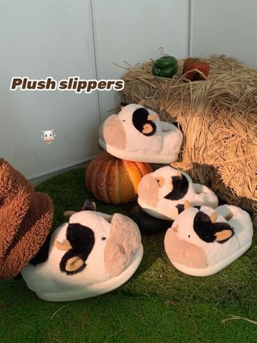 HOT ! Kawaii Cow Slippers for Women Teen Girls Fuzzy Home Slippers Fluffy Soft Plush Warm House Slippers for Women Men (13,White,14)