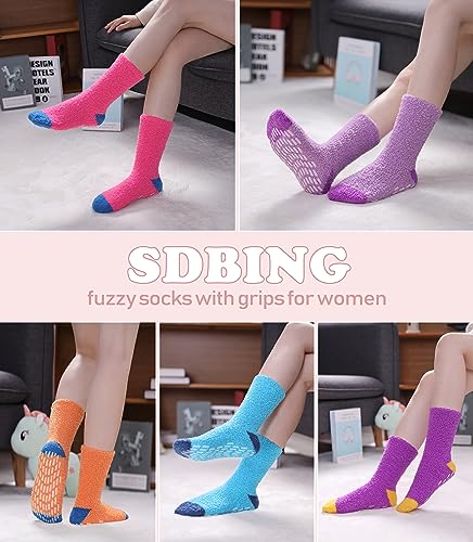 SDBING Non Slip Fuzzy Socks with Grips for Women - Hospital Slipper Socks 4