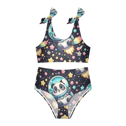 Girls' Bikini Set, Cute Cartoon Space Panda Stars Kids Swimsuit 2 Pcs Beach Bathing Suit 2