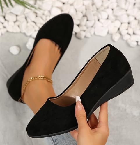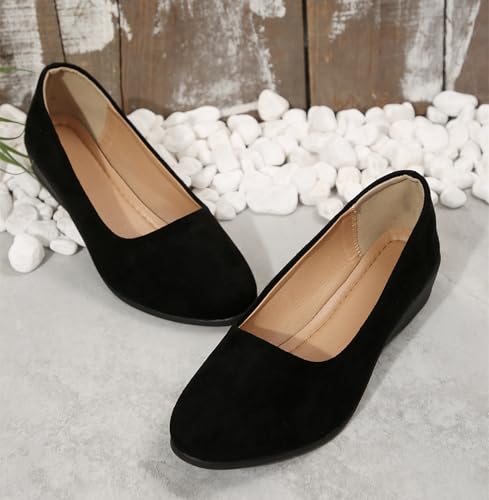 Women's Ballet Flats Business Office Work Dress Shoes Low Wedge Round Toe Slip-Ons Comfortable Dressy Casual Flats Shoes 7