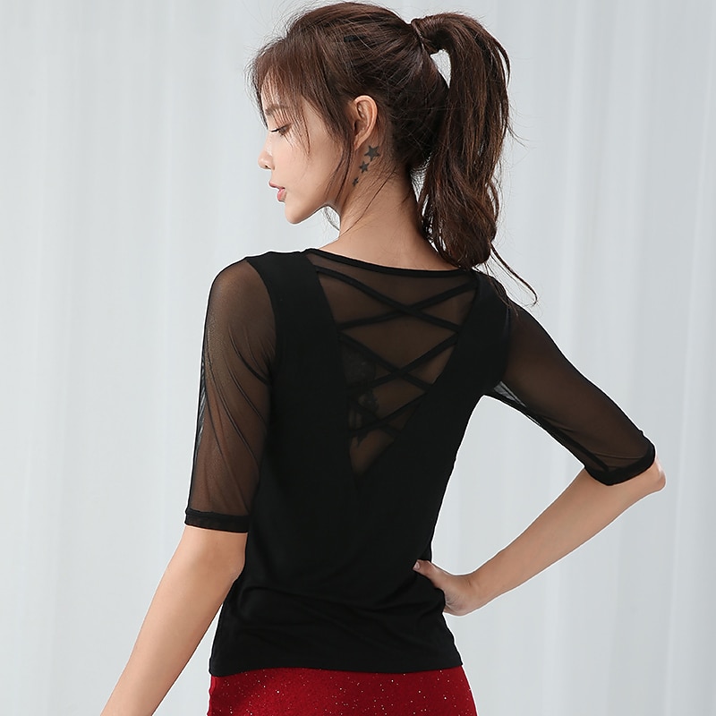 Latin Dance Top Ruching Women's Performance Half Sleeve Modal Mesh 1