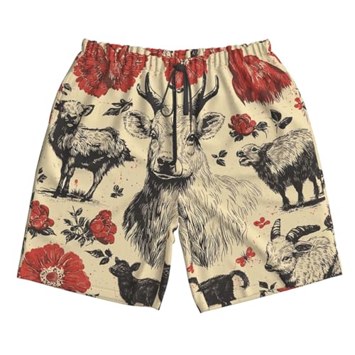 More information about Men Swim Trunks Beach Shorts Swimwear Summer Bathing Suits - Farm House Animals Goat Retro