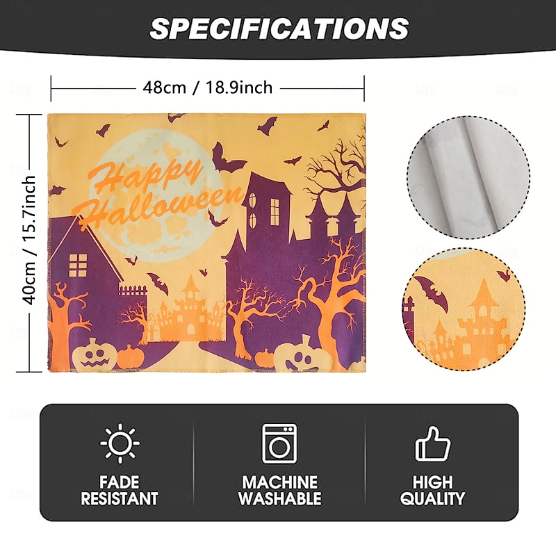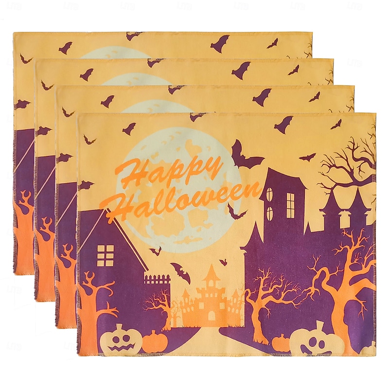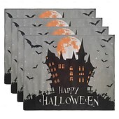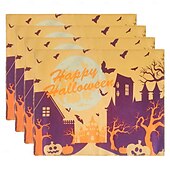 $12.49 - Halloween Placemats, Rectangle Easy Care Cotton Linen Place Mat, Decorative Table Mat for Party Holiday Everyday Use 4 Pieces, Witches Hat Spooky Pumpkins Magical Night Autumn 2025. Shop for cheap Halloween Kithen online? Buy at lightinthebox.com on sale today!