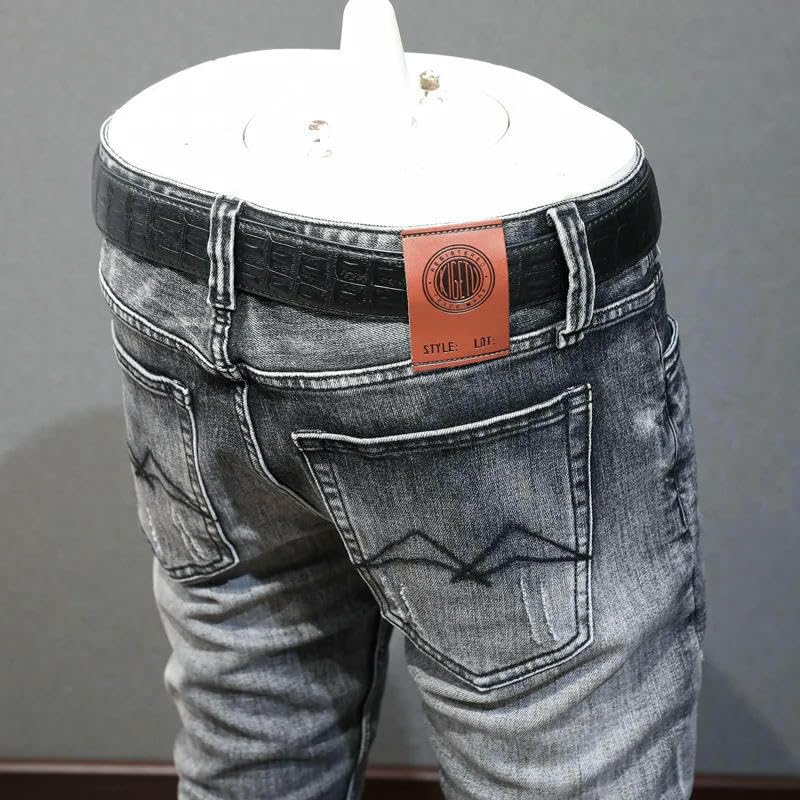 More information about Men's Jeans Retro Dark9 Gray9 Elastic Slim Fit Ripped ​​Trousers Men Vintage Casual Denim Pants