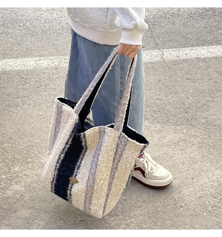 HOT ! Women's Plush Tote Bag Large Shoulder Bag with Dual Sides Soft Trendy Casual Commuter Bag for Work Travel
