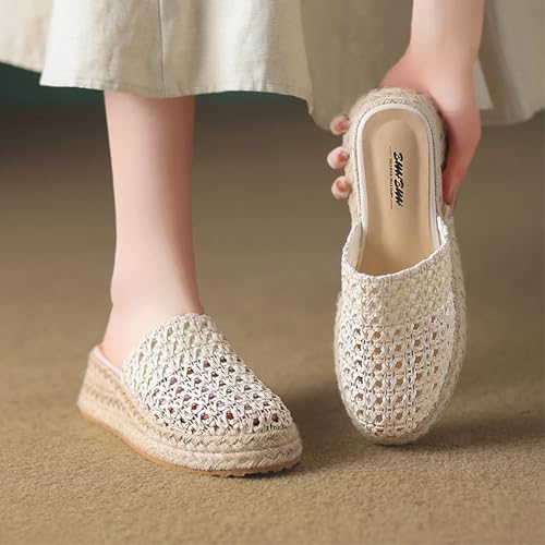 HOT ! Platform Sandals Espadrilles Wedges for Women Closed Toe Raffia Sandals Hollow Out Beach Slip On Shoes Summer Slides Mules for Dressy Party Vacation