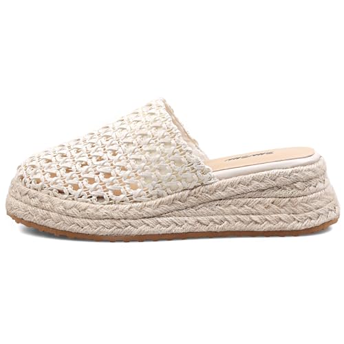 Platform Sandals Espadrilles Wedges for Women Closed Toe Raffia Sandals Hollow Out Beach Slip On Shoes Summer Slides Mules for Dressy Party Vacation 6