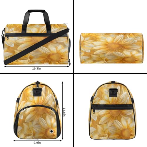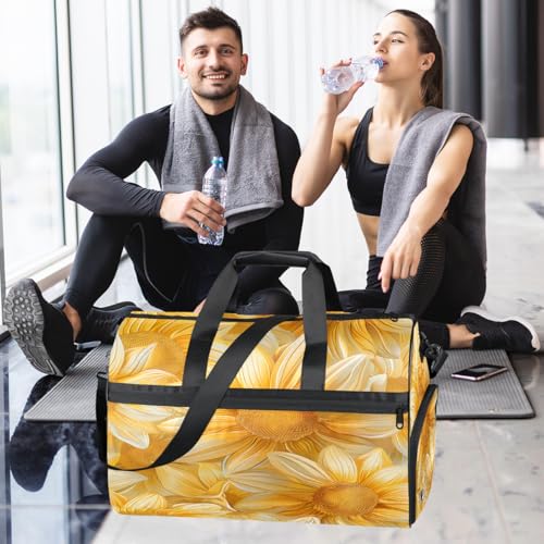 Gym Bag for Men & Women with Shoe & Wet Compartment - Duffel Bags for Travel, Sports, Fitness,Workout Yellow Sunflowers Yellow Sports Bag 6