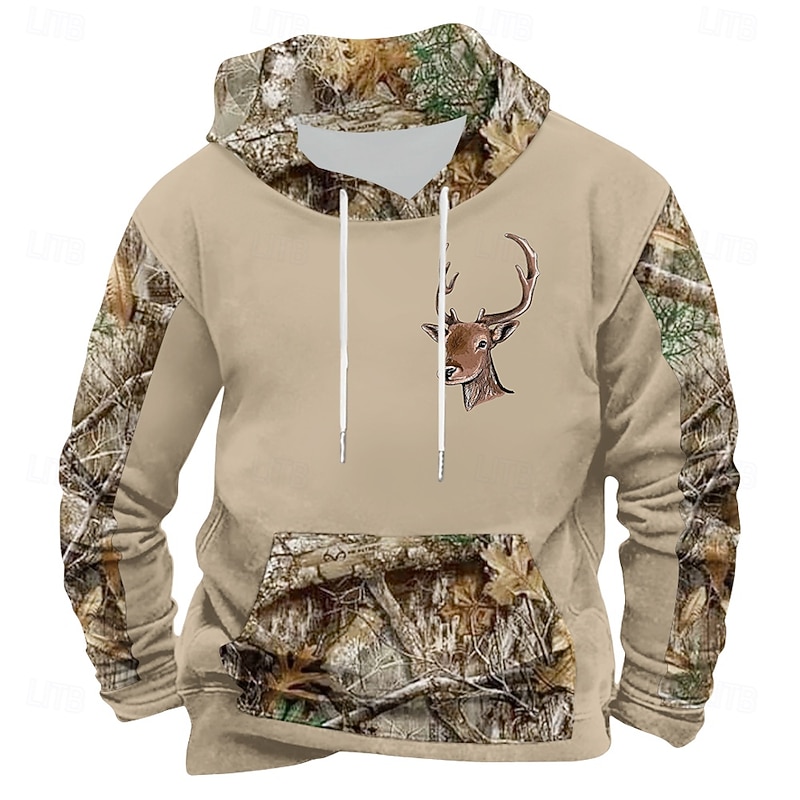 Men's Deer Hoodies Sweatshirt Ethnic Long Sleeve Crew Neck Holiday Hunting Black Blue Drawstring Fall Winter Designer 12