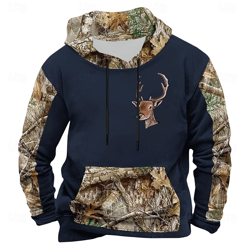 More information about Men's Deer Hoodies Sweatshirt Ethnic Long Sleeve Crew Neck Holiday Hunting Black Blue Drawstring Fall Winter Designer