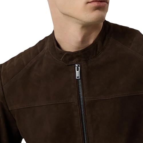 More information about Mens Suede Cafe Racer Jacket - Slim Fit Real Lambskin Suede Leather Motorcycle Jacket Men