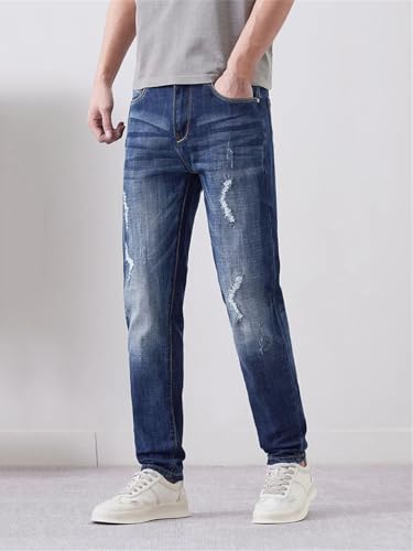 More information about Hndudnff Men Ripped Stretch Jeans Streetwear Hip-Hop Trousers Slim Little Feet Distress Denim Pants
